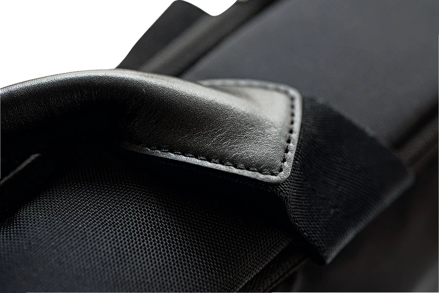 Makkelijk te dragen dankzij lederen handvat, verstelbare schouderriem of te bevestigen aan jouw trolley.