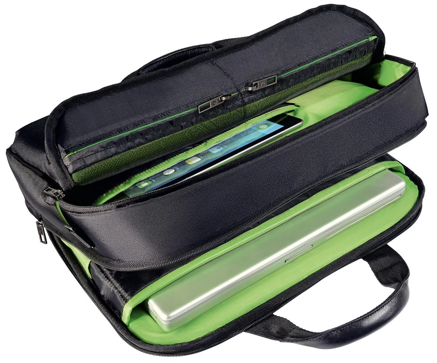 Kwaliteit lichtgewicht zakelijke tas met 2 hoofdcompartimenten en een kleiner voorvak.